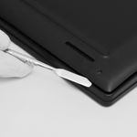 Estuche contenedor con funda de aluminio.
